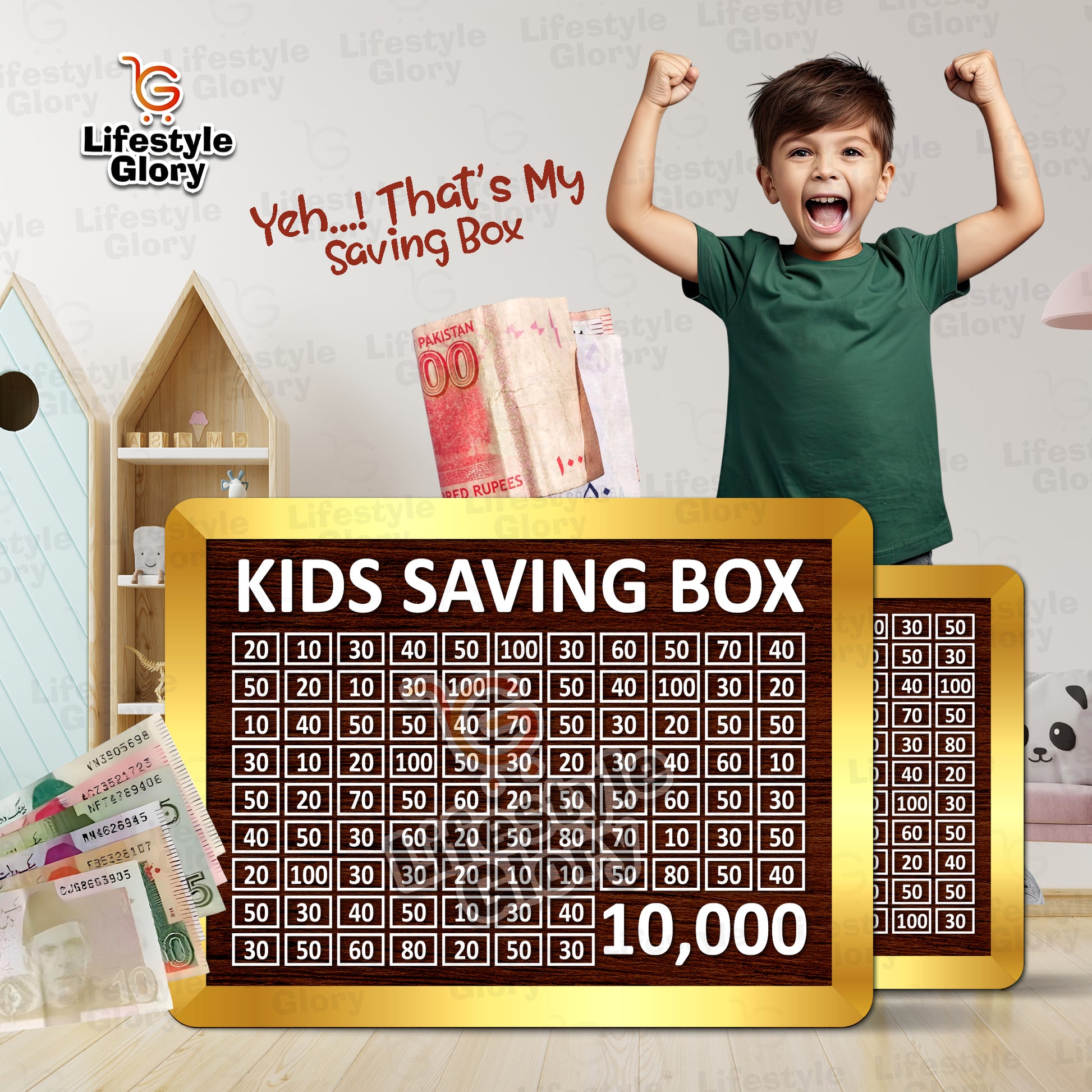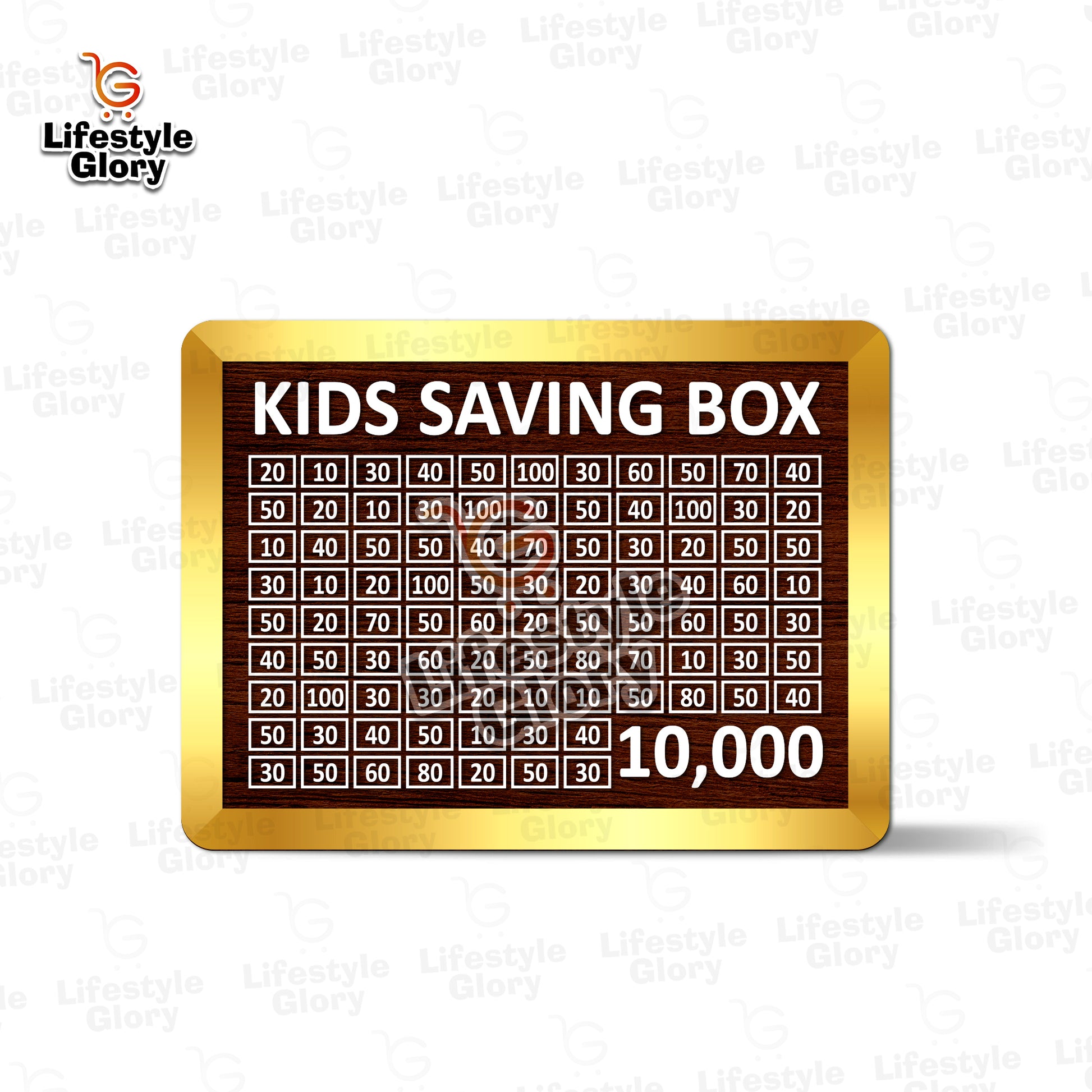 Brand Name Lifestyle Glory Product Kids Saving Box 10 000 PKR Money Saving Challenge Colors Brown Wood With Golden Acrylic Size 6 Inches Width By 5 Inches Height Material High Quality MDF Wooden With Top Class Acrylic Make saving fun and educational for your kids with the Lifestyle Glory Kids Saving Box This smart money saving challenge box helps children reach a 10 000 PKR goal by saving small daily amounts Each box on the chart has an amount to deposit once all are filled your child has saved a full 10 000 rupees Crafted from premium material this wooden saving box is a great tool for teaching financial discipline goal setting and responsibility in an exciting and rewarding way Perfect gift for birthdays Eid or back to school motivation 10 000 PKR Kids Money Saving Box Fun saving challenge for children Daily cash deposit goal chart Wooden and reusable design Best for ages 5 and up Educational fun and rewarding Kids Saving Box 10 000 PKR Money Saving Challenge Chart for Children I Fun Learning Wooden Cash Box by Lifestyle Glory Brand I Saving Box I Saving Box For Money I Saving Money Box I Money Box I Money Saving Box